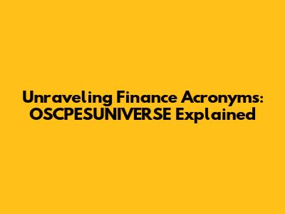Hey guys, ever feel like you're drowning in a sea of financial jargon? You're not alone! The world of finance is absolutely packed with acronyms, and sometimes it feels like a secret code only the experts can crack. Today, we're diving deep into one of those acronyms that might have popped up on your radar: OSCPESUNIVERSE. Now, I know what you're thinking, "What in the world does that even mean?" Stick with me, because by the end of this article, you'll not only understand what OSCPESUNIVERSE stands for, but also why it's super important in the financial landscape. We'll break it down piece by piece, making sure you get the full picture without any of the usual confusion. So, grab your favorite drink, get comfy, and let's start deciphering this financial mystery together. We're going to explore its components, its significance, and how it impacts various aspects of finance, from personal investing to big-shot corporate strategies. Get ready to boost your financial IQ!