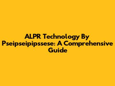 ALPR Technology By Pseipseipipssese: A Comprehensive Guide