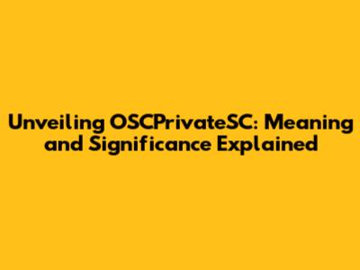 Why OSCPrivateSC Matters: Significance and Applications