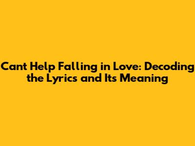 Hey everyone! Ever wondered about the real meaning behind the timeless classic, "Can't Help Falling in Love"? This song, a true gem in the music world, has touched hearts across generations. It's not just a beautiful melody; it's a profound expression of love and surrender. In this article, we'll dive deep into the lyrics, explore the Can't Help Falling in Love meaning, and uncover why it continues to resonate with so many of us. Whether you're a long-time fan or just discovering this beautiful song, get ready to explore the depth of its emotions and the impact it's had on music and culture.