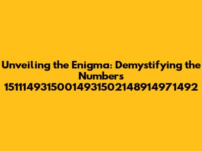 Hey guys, have you ever stumbled upon a sequence of numbers that just…sticks with you? Like, you see it everywhere, and you start wondering, what does it all mean? Well, today, we're diving deep into the world of numerology, specifically, the intriguing sequence: 15111493150014931502148914971492. Sounds like a mouthful, right? But trust me, there's a fascinating story behind every digit, and we're going to break it all down for you. This isn't some hocus-pocus; it's about understanding the potential energies and influences these numbers might represent in different aspects of your life. So, buckle up, because we're about to decode this numerical puzzle together! We'll explore the possible interpretations, the potential meanings, and the insights this number sequence might offer. Ready to unlock some secrets? Let's get started!