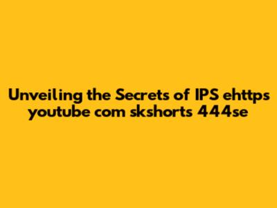 Decoding the IPS ehttps youtube com skshorts 444se Link