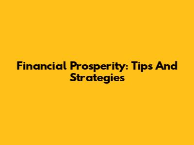 Financial Prosperity: Tips And Strategies