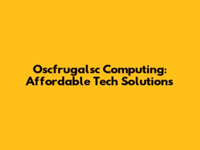 Oscfrugalsc Computing: Affordable Tech Solutions