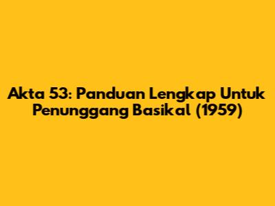Akta 53: Panduan Lengkap Untuk Penunggang Basikal (1959)
