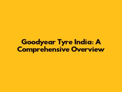 Goodyear Tyre India: A Comprehensive Overview