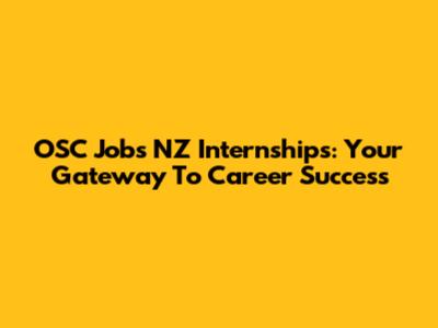 OSC Jobs NZ Internships: Your Gateway To Career Success