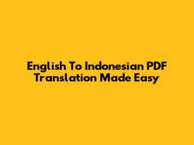 English To Indonesian PDF Translation Made Easy