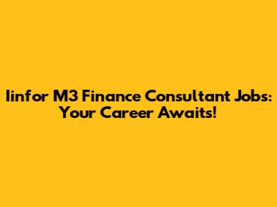 Iinfor M3 Finance Consultant Jobs: Your Career Awaits!