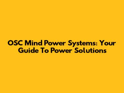 OSC Mind Power Systems: Your Guide To Power Solutions