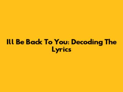 I'll Be Back To You: Decoding The Lyrics