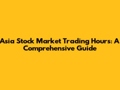 Asia Stock Market Trading Hours: A Comprehensive Guide
